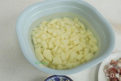 2. 鸡瓜去皮切块,洋芋去皮切块。